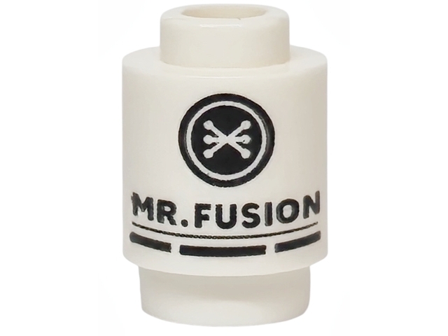 Brick, Round 1 x 1 with Black 'MR. FUSION' Pattern
