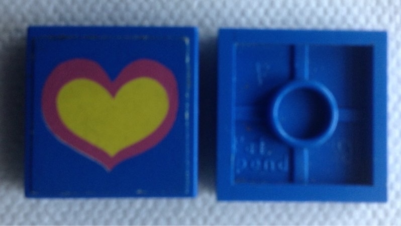 Tile 2 x 2 without Groove with Pink and Yellow Heart on Blue Background Pattern (Sticker) - Set 275-1