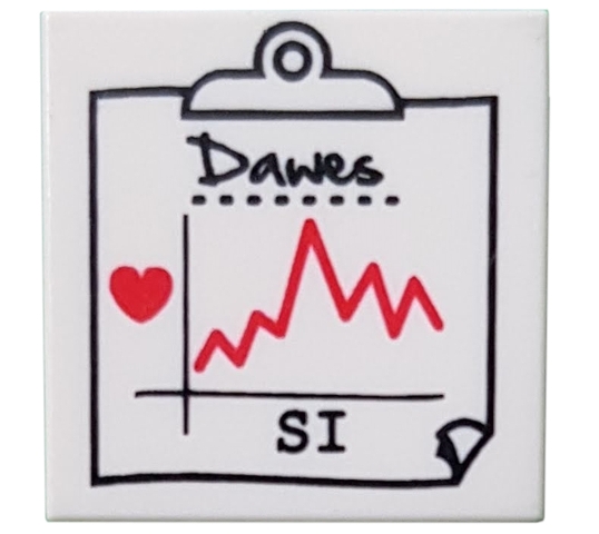 Tile 2 x 2 with Black 'Dawes' and 'SI' and Red Heart and Jagged Line on Medical Chart Clipboard Pattern
