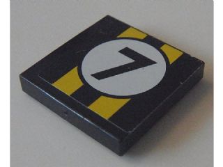 Tile 2 x 2 with Yellow Stripes and Black Number 7 on White Circle Pattern (Sticker) - Set 8154