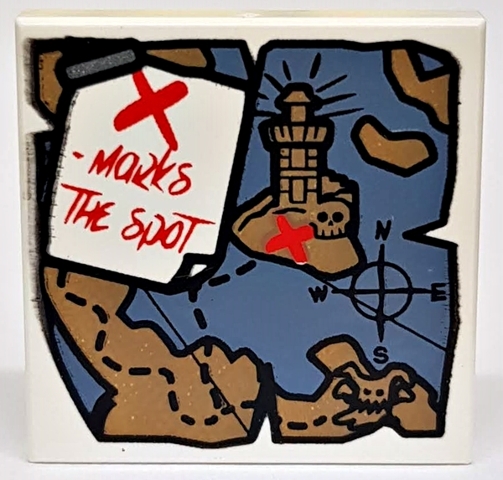 Tile 2 x 2 with Map Treasure with Paper with 'X - MARKS THE SPOT' Pattern
