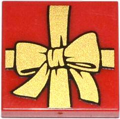 Tile 2 x 2 with Present / Gift with Gold Ribbon with Bow Pattern