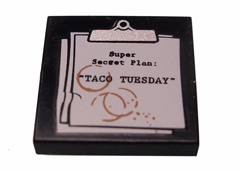 Tile 2 x 2 with Clipboard with 'Super Secret Plan: "TACO TUESDAY"' and Coffee Stains Pattern