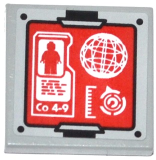 Tile 2 x 2 with Minifigure Silhouette, 'Co 4-9', Sphere and Gauges on Red Screen Pattern (Sticker) - Set 70815