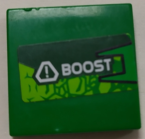 Tile 2 x 2 with Lime Scales and White Exclamation Mark in Triangle and 'BOOST' Pattern Model Right Side (Sticker) - Set 8114