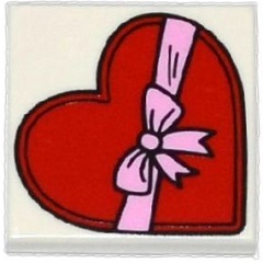 Tile 2 x 2 with Red Heart Present / Gift Box with Bright Pink Ribbon with Bow Pattern