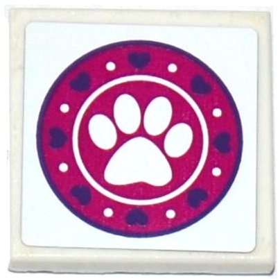 Tile 2 x 2 with Dark Purple Hearts, White Paw Print and Dots in Magenta Circle Pattern (Sticker) - Set 41124