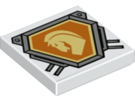 Tile 2 x 2 with Bright Light Yellow Horse Head on Orange Hexagonal Shield with Silver Border Pattern