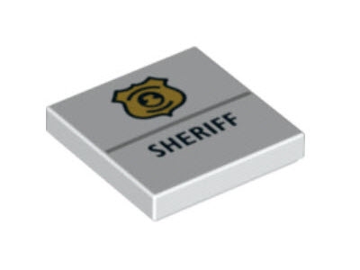 Tile 2 x 2 with Gold Police Badge and Black 'SHERIFF' Pattern