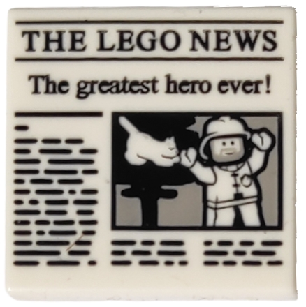 Tile 2 x 2 with Newspaper 'THE LEGO NEWS' and 'The greatest hero ever!' Pattern