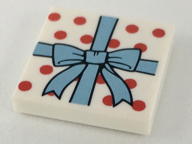 Tile 2 x 2 with Metallic Light Blue Ribbon with Bow, Red Polka Dots Pattern