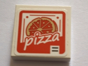 Tile 2 x 2 with White 'pizza' on Red Background Pattern (Sticker) - Set 75827