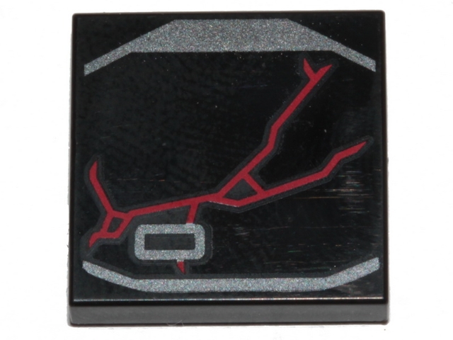 Tile 2 x 2 with Red Scratches and Silver Lines Pattern (BrickHeadz Kylo Ren Mask Front)