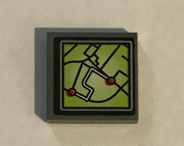 Tile 2 x 2 with Lime GPS Map Screen with 2 Red Dots Pattern (Sticker) - Set 60139