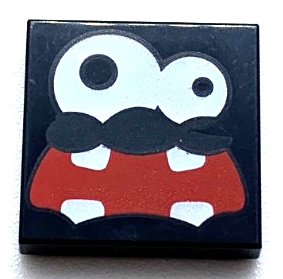 Tile 2 x 2 with White Eyes, Large Right Eye, and Red Wide Open Mouth with 4 Teeth Pattern (Super Mario Fuzzy Face)