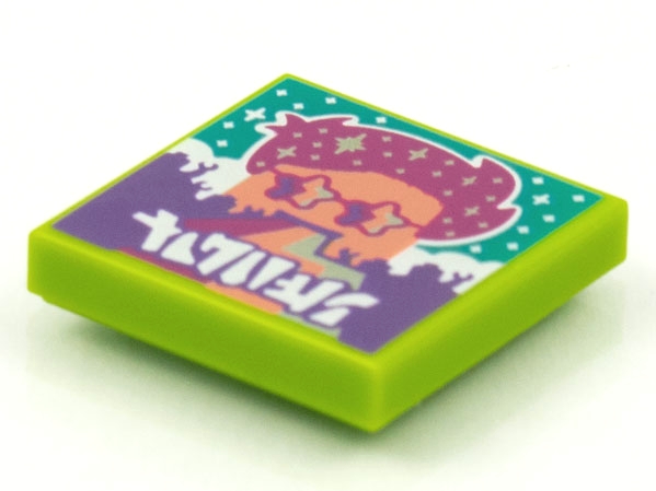 Tile 2 x 2 with BeatBit Album Cover - Coral Minifigure, Magenta Hair and Star Glasses Pattern