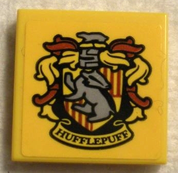 Tile 2 x 2 with HP 'HUFFLEPUFF' House Crest with Red Plumes on Yellow Background Pattern (Sticker) - Set 75956