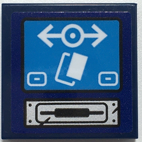 Tile 2 x 2 with Silver Ticket Slot, Dark Azure Screen with White Train Logo and Buttons Pattern (Sticker) - Set 70424