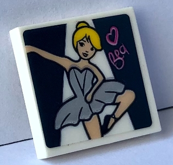 Tile 2 x 2 with Ballerina in Spotlight, Dark Pink Heart and 'Bea' Pattern (Sticker) - Set 41670