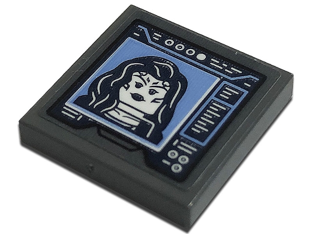 Tile 2 x 2 with Dark Blue Screen with Minifigure Head on Bright Light Blue Background Pattern (Sticker) - Set 76193