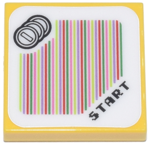 Tile 2 x 2 with Super Mario Scanner Code Coins and 'START' Pattern (Sticker) - Sets 71390 / 71434