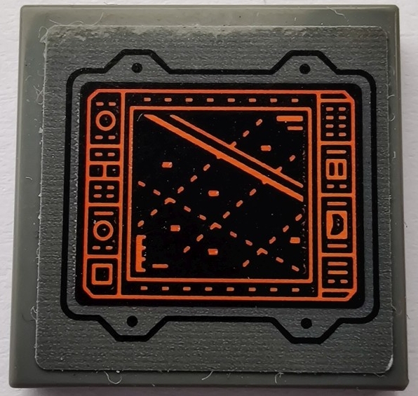 Tile 2 x 2 with Display Screen with Black and Orange Radar Map Pattern (Sticker) - Set 76240