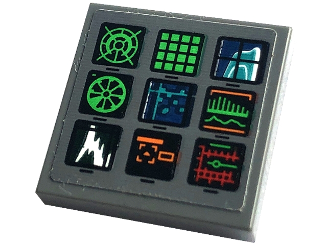 Tile 2 x 2 with Display Screens with Green, Orange and Red Charts, Graphs, Radar and Grids Pattern (Sticker) - Set 76240