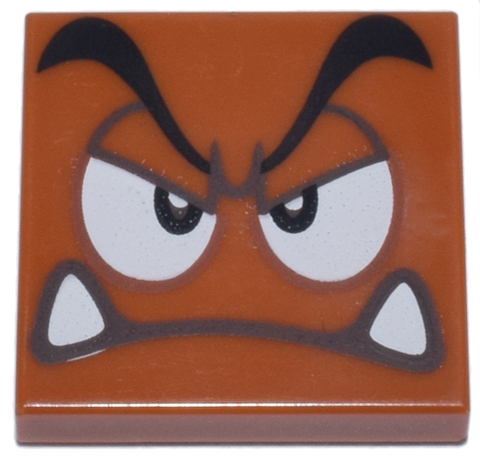 Tile 2 x 2 with Black Eyebrows, Dark Brown and White Eyes Looking Straight Partially Closed, Angry Frown with Bottom Fangs Pattern (Super Mario Goomba Face)