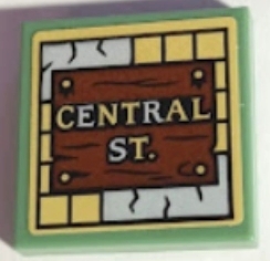 Tile 2 x 2 with 'CENTRAL ST.' Sign on Reddish Brown Wooden Board Pattern (Sticker) - Set 70430