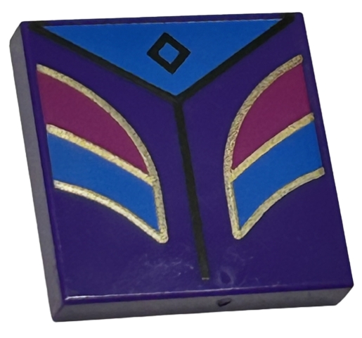 Tile 2 x 2 with Blue and Magenta Shapes with Gold Outline, Triangle with Black Diamond Pattern (BrickHeadz Kingsley Shacklebolt Torso)