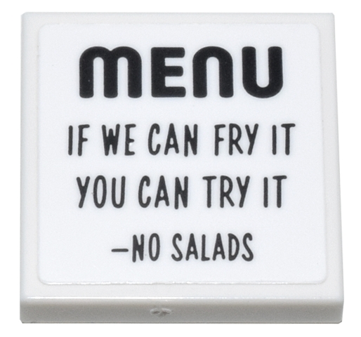 Tile 2 x 2 with Black 'MENU' 'IF WE CAN FRY IT YOU CAN TRY IT -NO SALADS' Pattern (Sticker) - Set 910011