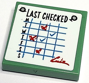 Tile 2 x 2 with Black 'LAST CHECKED', Dark Azure Grid and Check Marks, Red Crosses and Signature Pattern (Sticker) - Set 70430