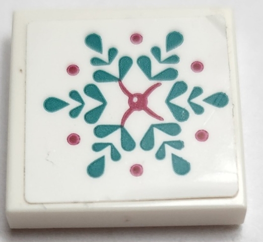 Tile 2 x 2 with Cushion with Dark Turquoise Leaves, Magenta Dots and Button Pattern (Sticker) - Set 41167