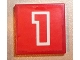 Tile 2 x 2 with Number 1 Red with White Outline on Red Background Pattern (Sticker) - Set 6382