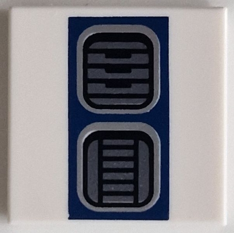 Tile 2 x 2 with Dark Silver SW R2-D2 Astromech Droid Vents on Dark Blue Rectangle Pattern