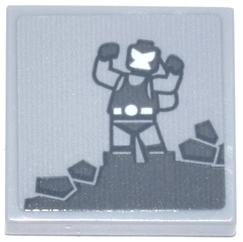 Tile 2 x 2 with Dark Bluish Gray Bane Minifigure on Broken Rocks, White Face and Belt Pattern (Sticker) - Set 76271