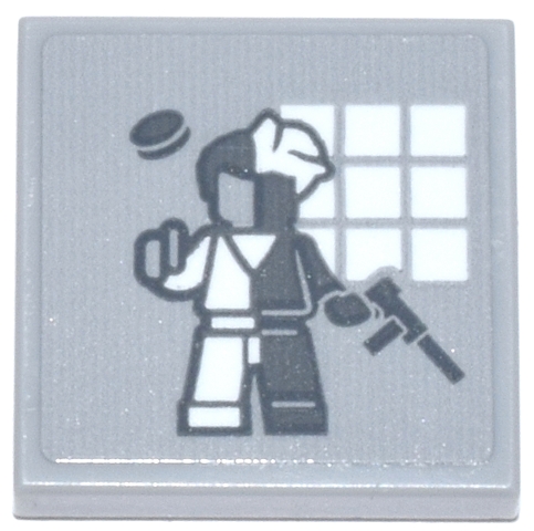 Tile 2 x 2 with Dark Bluish Gray Two-Face Minifigure and White Square Windows Pattern (Sticker) - Set 76271