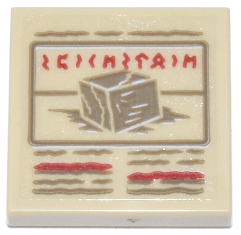 Tile 2 x 2 with Dark Tan Cracked Cube and Text and Red Runes Pattern (Sticker) - Set 76218