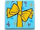Tile 2 x 2 with Present / Gift with Ribbon with Bow and Red, Bright Light Orange and Dark Azure Scrolls Pattern (BAM)