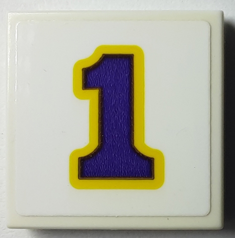 Tile 2 x 2 with Dark Purple Number 1 with Yellow Outline Pattern (Sticker) - Set 40385