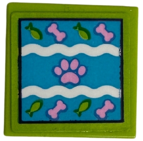 Tile 2 x 2 with Medium Azure Doormat with Fish, White Waves, Bright Pink Paw Print and Bones Pattern (Sticker) - Set 41718