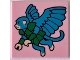 Tile 2 x 2 with Dark Azure and Light Nougat Flying Monkey with Green Armor, Black Outline Pattern