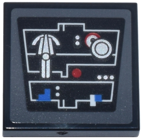 Tile 2 x 2 with Control Panel, White Angled Lines, Silver Dial, Red Circle Lights and Buttons, Blue Square and Shape Pattern (Sticker) - Set 75419