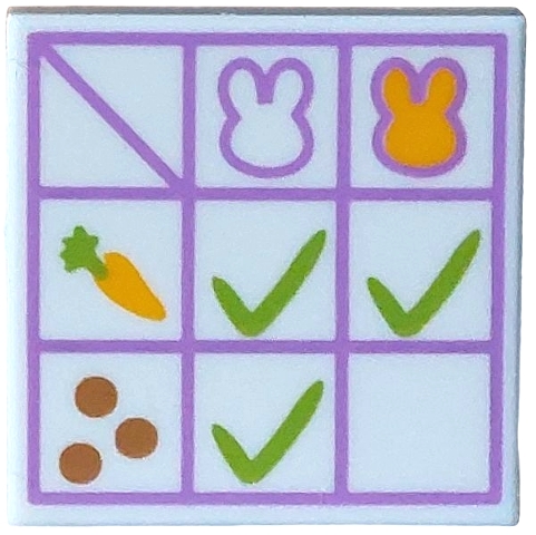 Tile 2 x 2 with Check Boxes, Medium Lavender Grid, Bright Light Orange and Lime Carrot, Medium Nougat Dots, Bunny / Rabbit Heads Pattern (Food Chart)