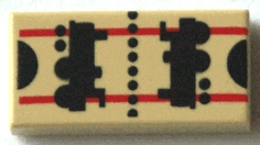 Tile 1 x 2 with Black Locomotives, Dots and Half Circles, Red Lines Pattern (HP Train Ticket)