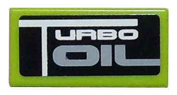 Tile 1 x 2 with White 'TURBO' and Light Bluish Gray 'OIL' on Black Background Pattern (Sticker) - Set 8133
