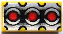Tile 1 x 2 with Red Circles on Silver and Black Background Pattern