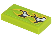 Tile 1 x 2 with Black and White Flames Pattern Model Center (Sticker) - Set 8302