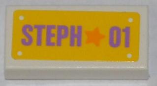 Tile 1 x 2 with Orange Star and Medium Lavender 'STEPH 01' on Yellow Background Pattern (Sticker) - Set 3183