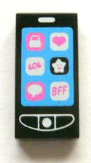 Tile 1 x 2 with Cell Phone / Smartphone with 'BFF', 'LOL', Heart, Lock, Speech Bubble and Star Pattern